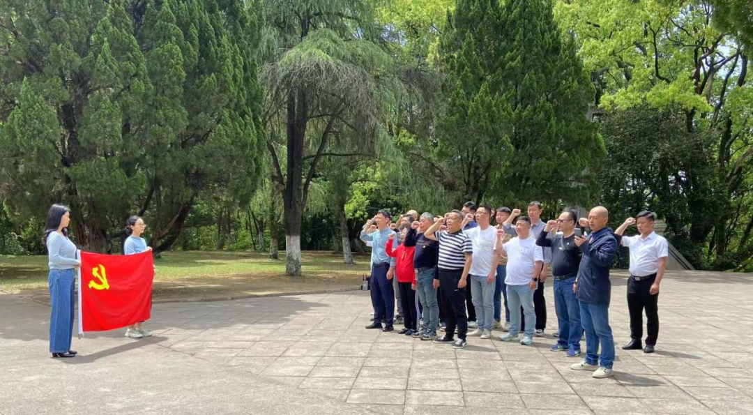 在巍峨耸立的烈士纪念碑前,全体党员干部神情肃穆,列队肃立默哀,向革命先烈致以深切缅怀。随后,党员干部们怀着崇敬之情敬献花束,寄托对先烈的无限追思。面对鲜红的党旗,全体党员高举右拳,重温入党誓词。铮铮誓言,铿锵有力,不仅是对革命先烈的崇高敬意,更是对党忠诚、为共产主义事业奋斗终身的庄严承诺。