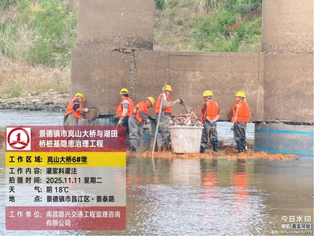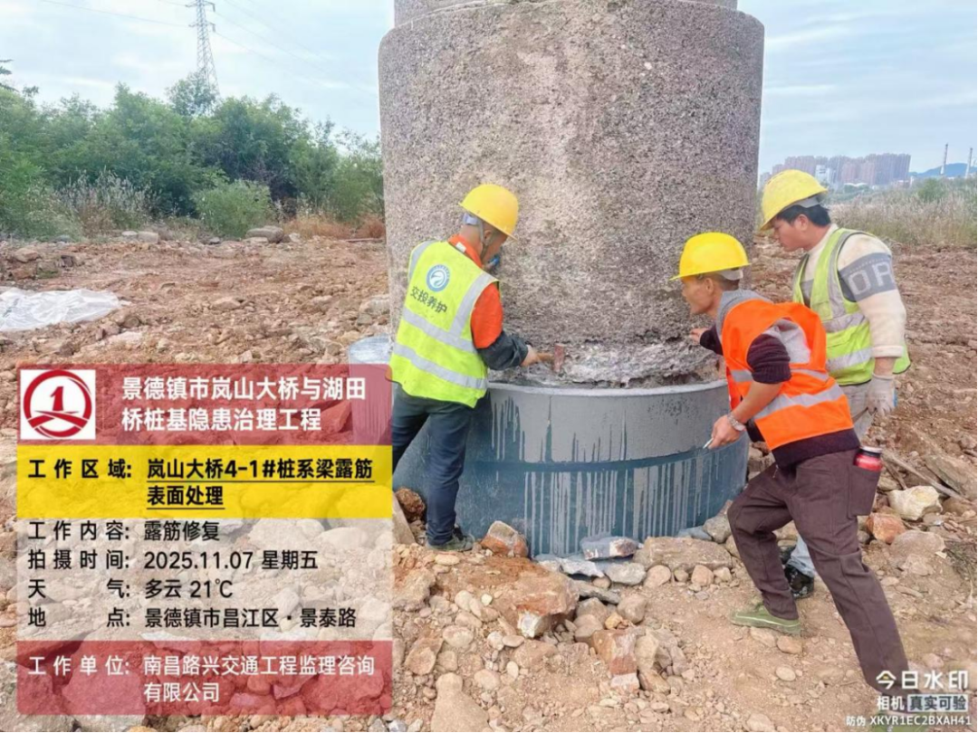 岚山大桥作为景泰路跨越昌江的关键交通枢纽,承担着繁重的通行任务——不仅日常车流量大、重型车辆往来频繁,更承载着沿岸两侧居民的高频次出行需求。随着服役时间的推移,桥梁不可避免地面临构件老化、荷载压力递增等现实挑战。在专业的桥梁结构检测中,工作人员精准发现岚山大桥部分桩基存在严重冲刷问题,伴随混凝土剥落、主筋外露锈蚀等结构性病害;无独有偶,湖田桥的检测结果同样敲响警钟,其4#墩被查实存在冲刷掏空现象,直接威胁桥梁基础稳定。