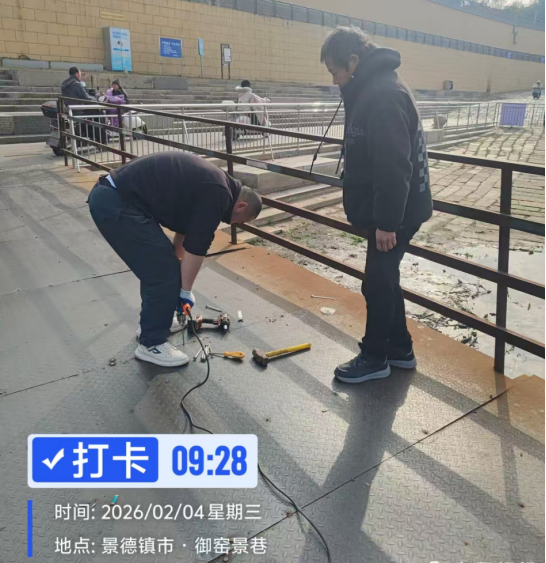 强化浮桥值守与加固,守住通行安全底线。针对中渡口浮桥的通行特点,中心重点加强该浮桥的值班值守与设施加固工作。2月4日组织专业人员对中渡口浮桥搭板和临时码头开展专项维修加固作业,全面排查整治设施薄弱环节。同时,在春节期间,专门安排工作人员在中渡口浮桥实行常态化值守,实时关注浮桥通行情况,及时疏导人流车流,确保中渡口浮桥春节期间安全、有序通行。