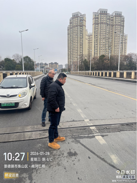 开展隐患排查整治,防范化解安全风险。为全面消除城市桥梁安全隐患,中心精心制定春节前隐患排查整治行动工作方案,明确排查范围、重点内容和工作要求,组织专业排查队伍开展城市桥梁安全隐患大排查。排查工作坚持全面覆盖、重点突出的原则,对辖区内城市桥梁的桥面、伸缩缝、护栏、墩柱及桥梁整体结构进行全方位、无死角排查,尤其对车流量大、易破损的重点点位实施重点排查、反复核查。排查过程中,发现南河二桥桥面、岚山大桥人行道存在破损问题,第一时间组织维修人员进场处置,及时完成破损部位维修,将安全隐患消除在萌芽状态,全力保障桥梁结构安全。