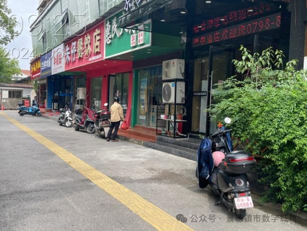 景德镇一中周边朱仔餐饮店门前非机动车乱停放 |