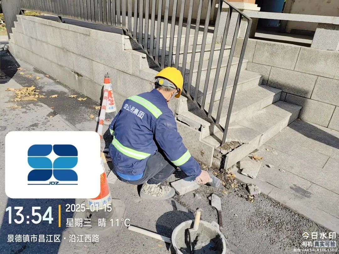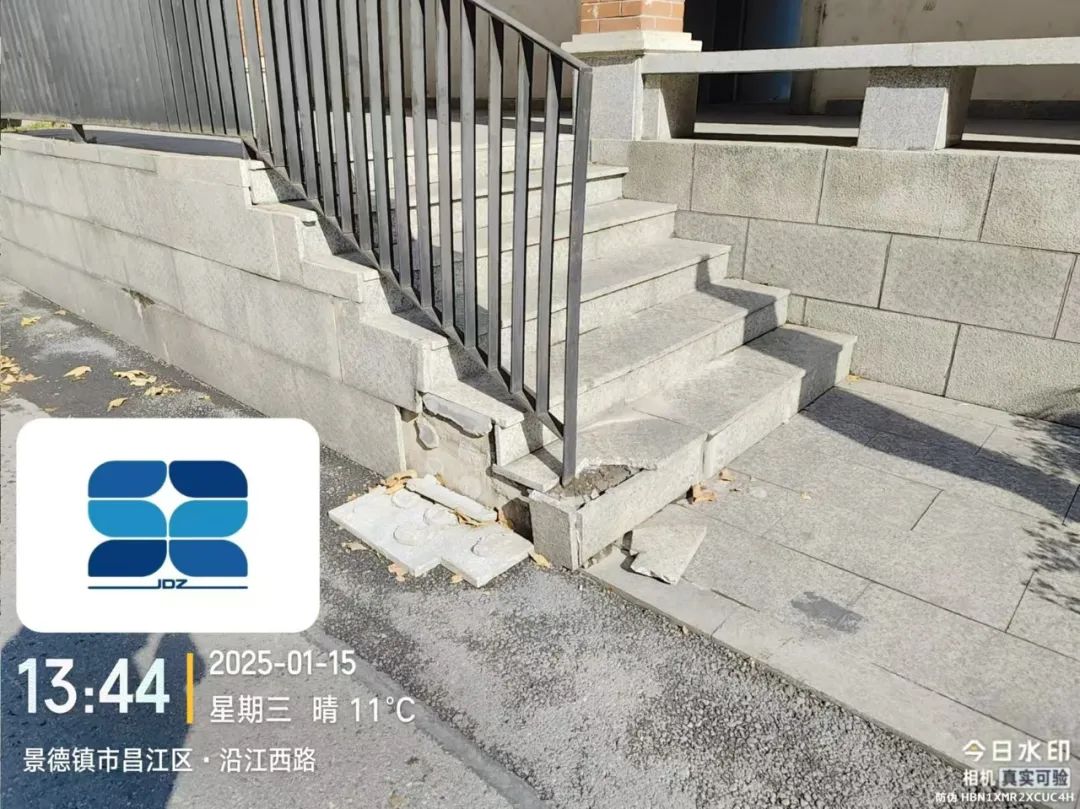 问:沿江西路沿江步道出入口处一台阶踏步破损,给市民日常出行带来不便,希望市政部门能尽快处理。