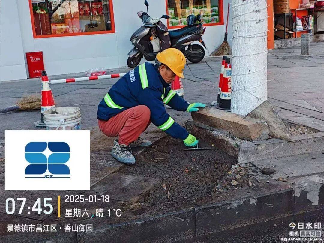 1月15日,接到有关社区反映,麻石下弄大城小厨店铺门前一污水井堵塞,给市民出行和沿街店铺日常营业带来不便。市政立即展开现场勘查,并做好路面修复,现已处理完毕,效果如下图所示。