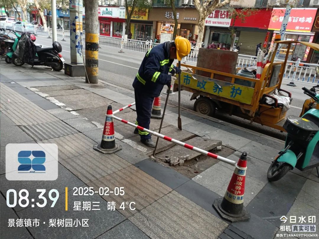 2月5日,养护一线巡查发现,中山南路十八桥商城段一人行道路面破损,影响市民日常出行和城市道路环境美观。市政及时展开路面修复,现已处理完毕,效果如下图所示。