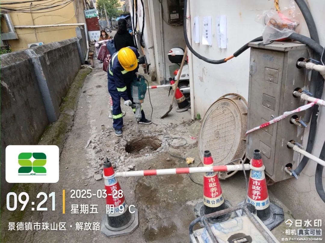 施工动态:目前正在进行陶艺街与陶溪川南路交叉口雨水及污水接入口开挖、人工配合机械管线探挖等施工