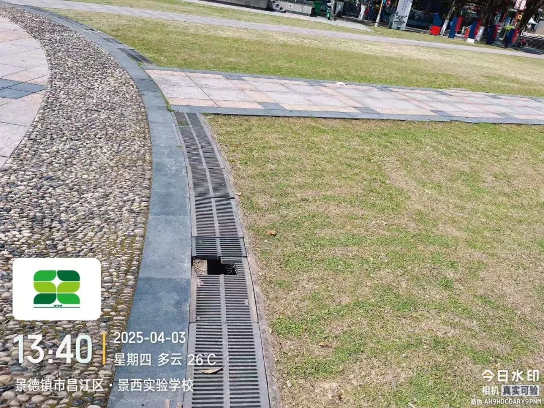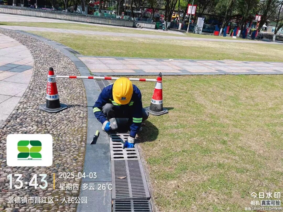 4月3日,接到一市民反映,人民公园内一雨水井盖破损缺失,给市民日常游园带来安全隐患。市政立即展开现场勘查,并做好井盖加装及道路修复工作,现已处理完毕,效果如下图所示。