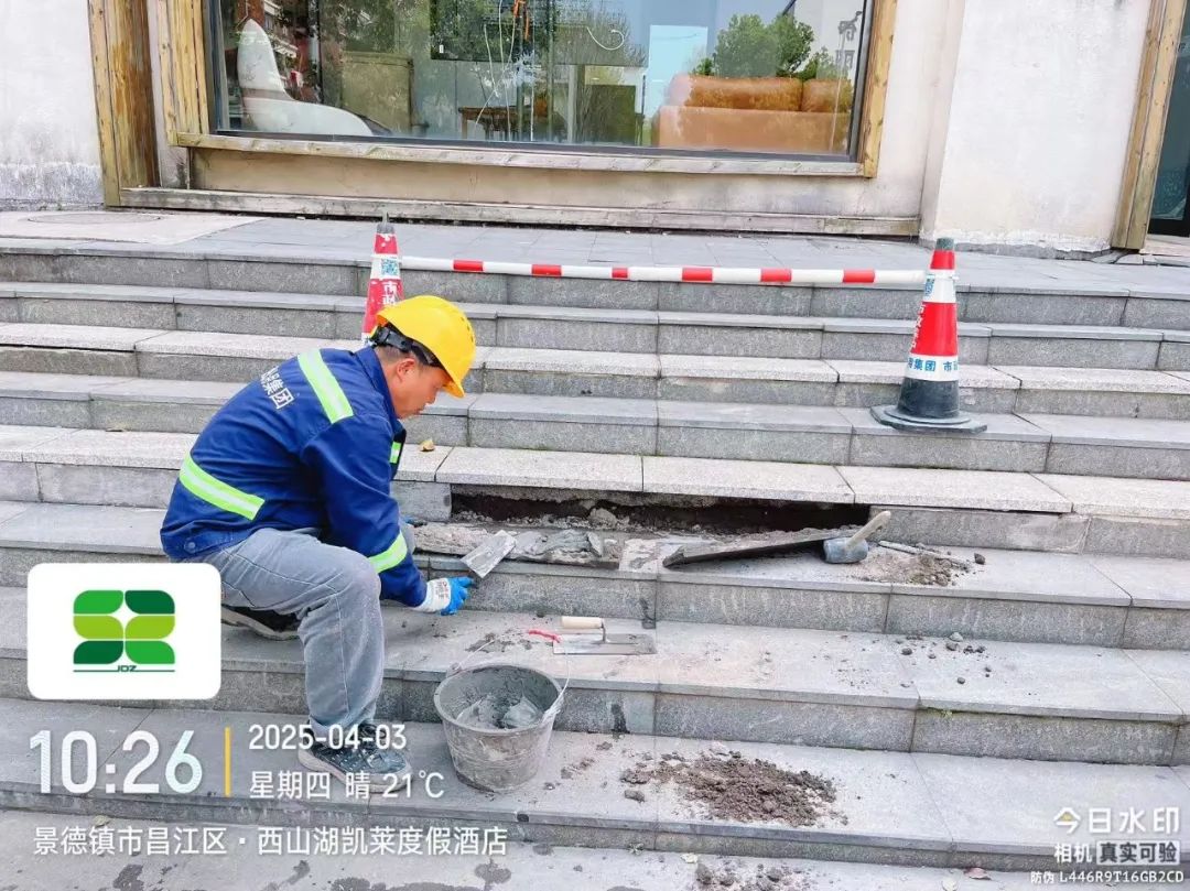 4月3日,养护一线巡查发现,新平路西山湖凯莱度假酒店段一人行道踏步破损,影响市民日常出行。市政及时展开修复,现已处理完毕,效果如下图所示。