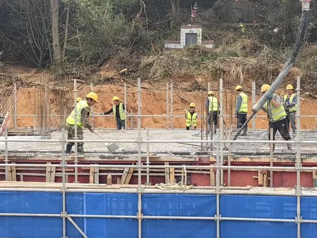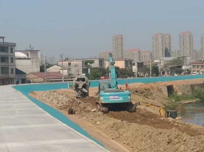 施工动态:目前正在进行挡土墙工程(东侧墙身片石砼浇筑、模板安装、混凝土浇筑)(西侧挡土墙喷锚完成、墙身片石砼浇筑、模板安装);安置房建设(梁柱模版安装、梁板内架搭设、墙身片石砼浇筑);防洪堤工程(边坡刷坡、双涵管预埋、排水沟开挖、路灯基础及管线预埋、游坡道大理石铺设、混凝土浇筑皆已完成)等施工