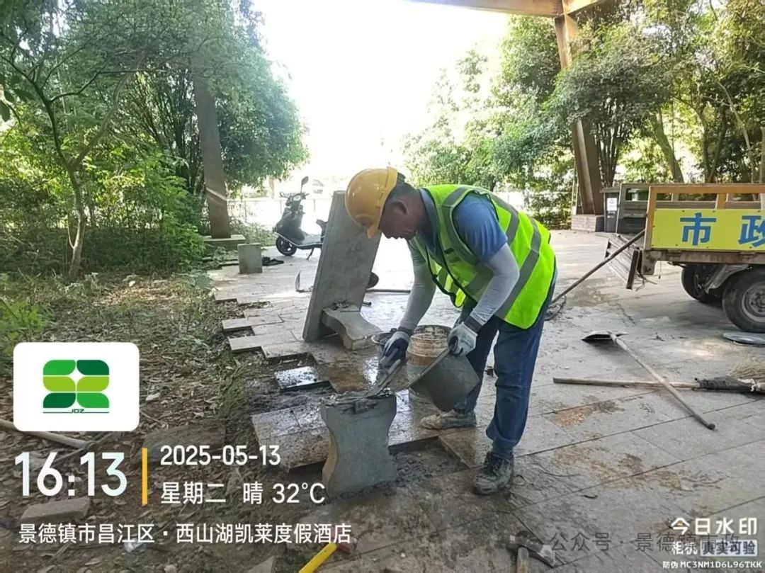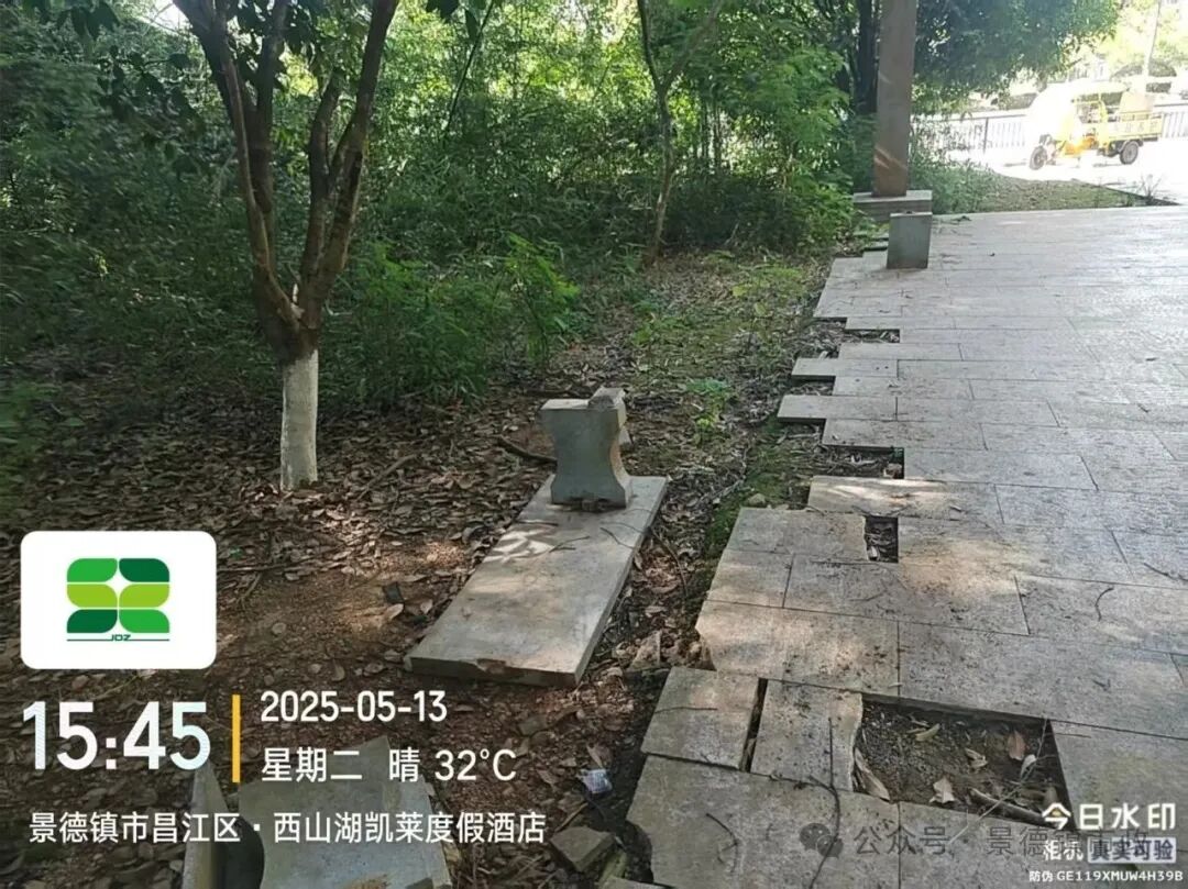 5月13日,接到一市民反映,珠山大道西山湖凯莱度假酒店段一人行道休闲座椅破损。市政立即前往现场,并及时做好修复,现已处理完毕。