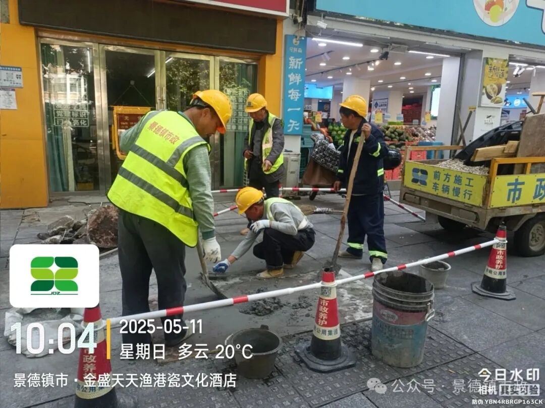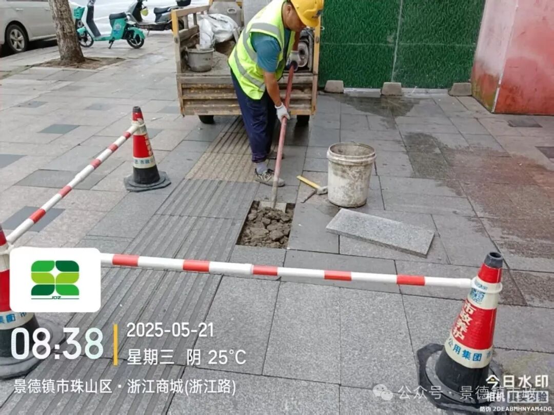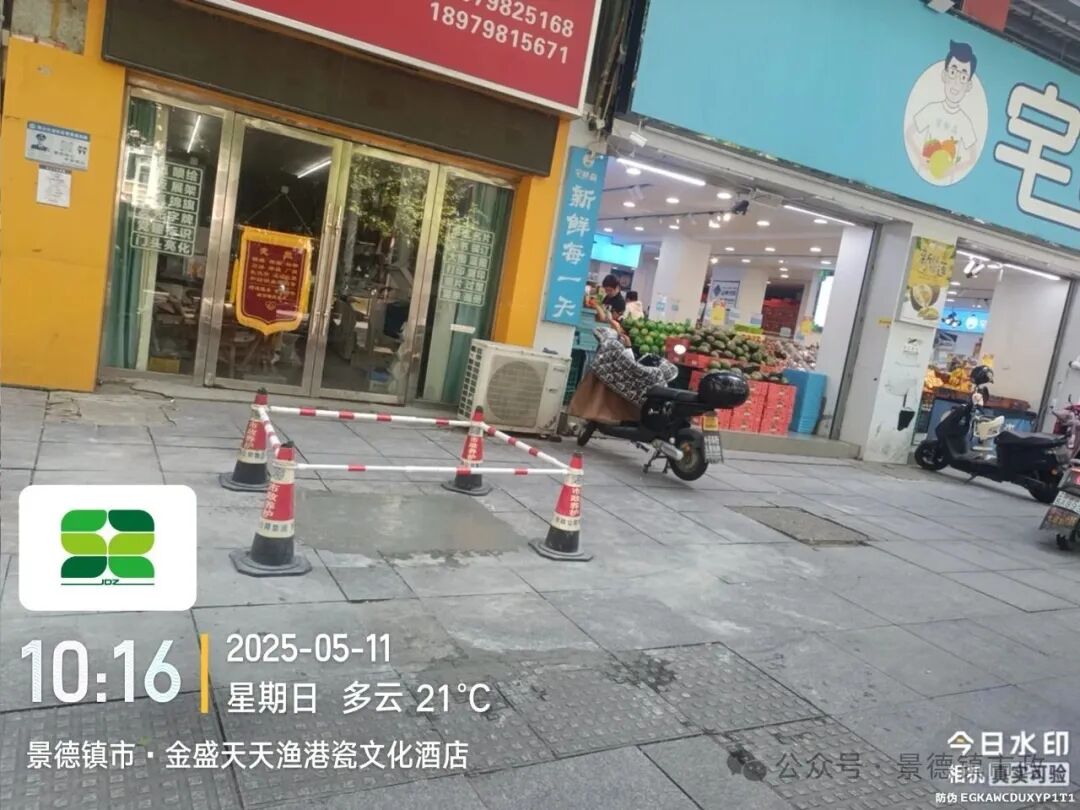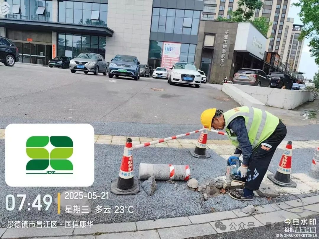 5月16日,养护一线巡查发现,景德东大道与陶阳南路交叉口,由第十七中学往九集小镇右行方向人行坡道不明显,影响市民日常出行安全。市政及时增设塑料交通障碍柱予以警示,现已处理完毕,效果如下图所示。