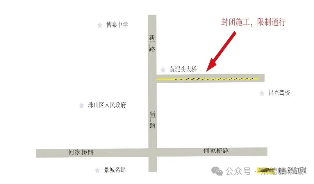 道路状况:102县道黄泥头大桥至昌兴驾校路段封闭施工且限制通行;经过施工区域,请注意安全