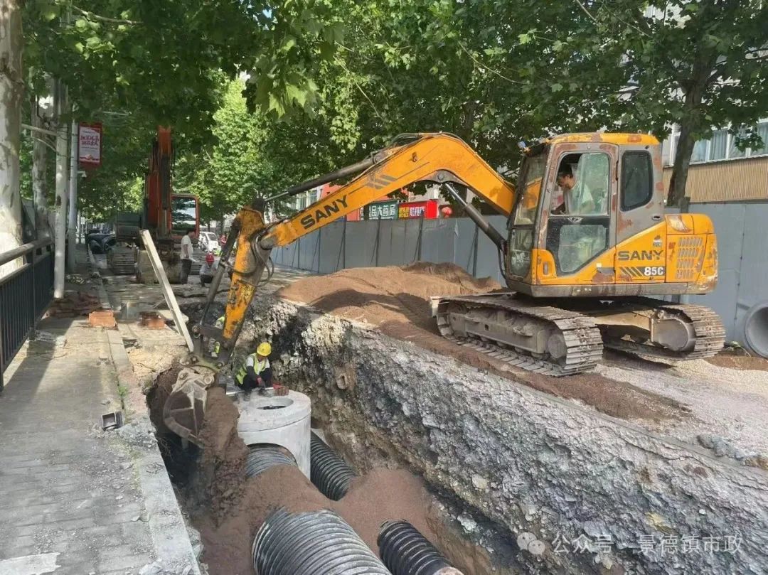 施工动态:目前正在进行口腔医院至南湖丽景段路面开挖、雨污水沟槽主管及支管开挖;陶艺小区段进行管线现场踏勘