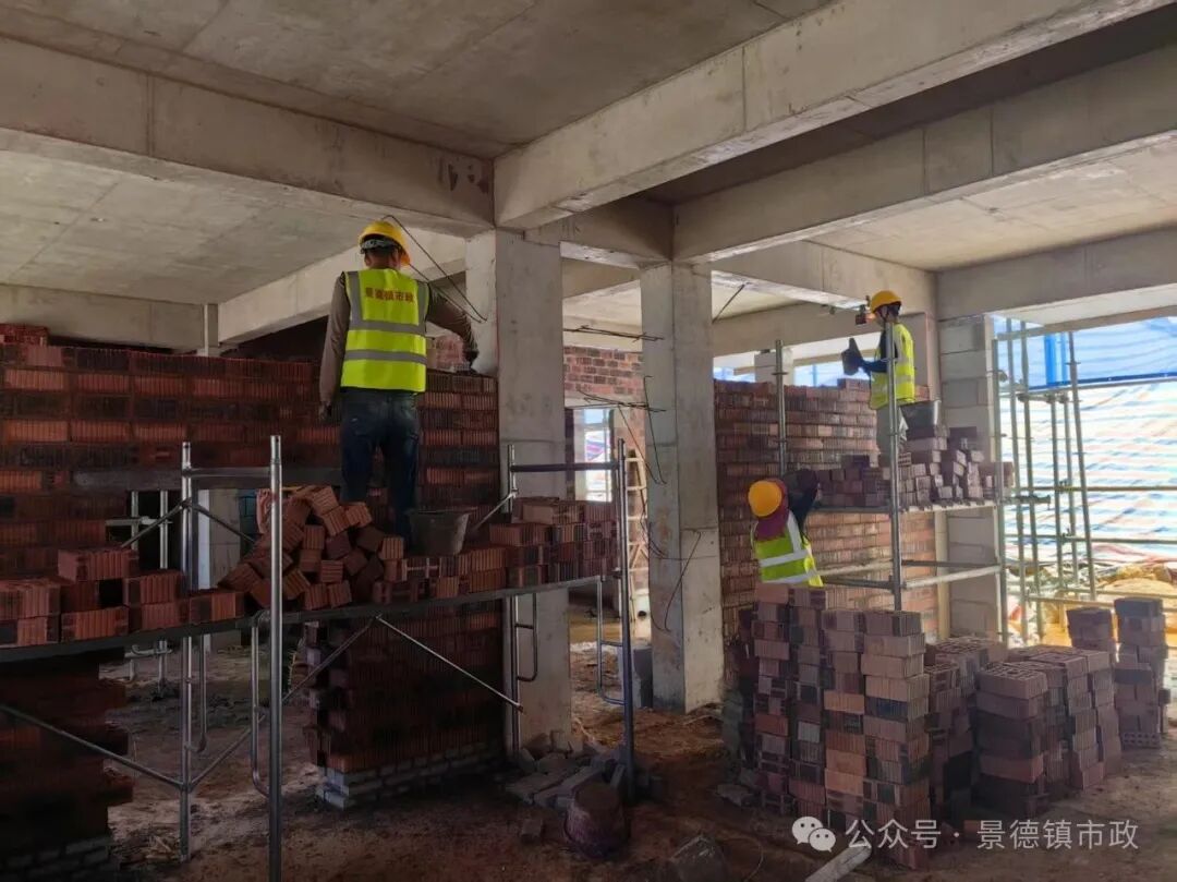施工动态:目前正在进行安置房建设(基础回填及浇筑、楼外架搭设、墙体砌筑)等施工