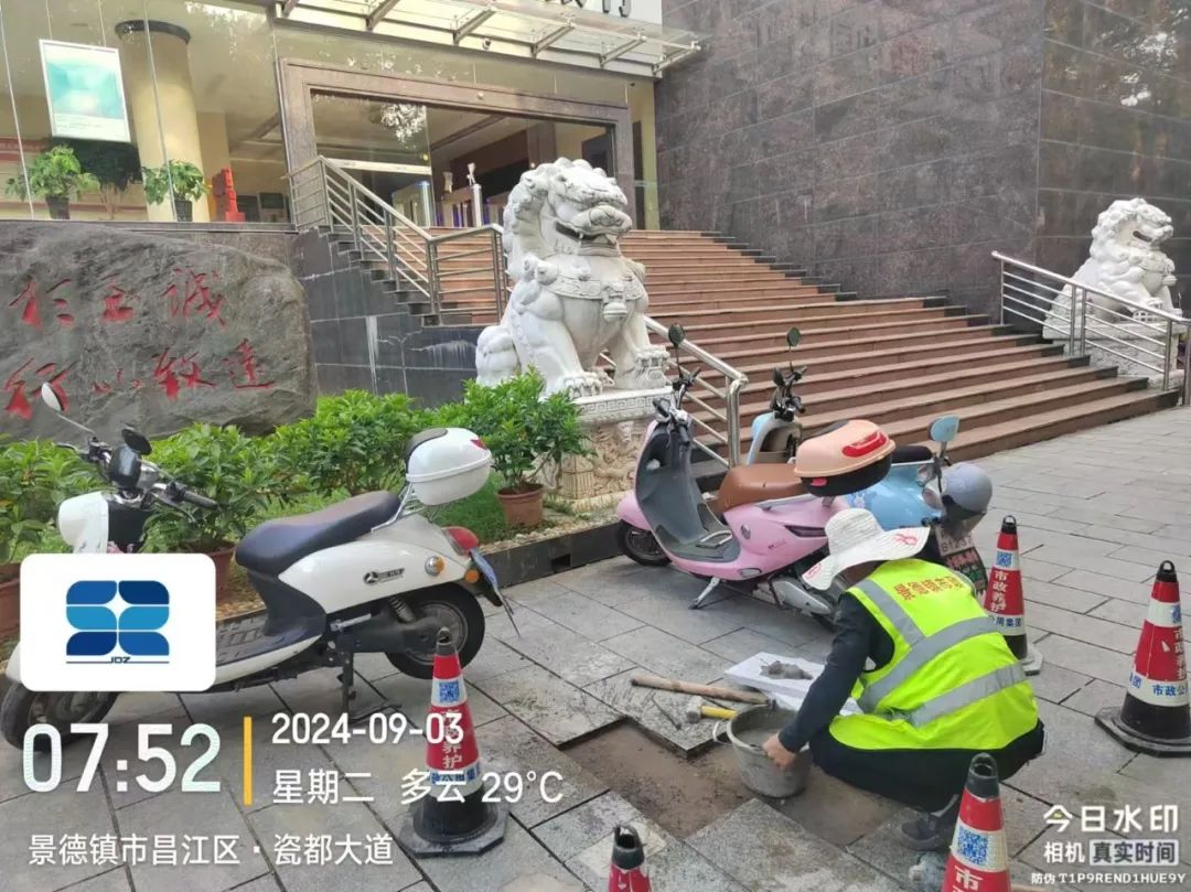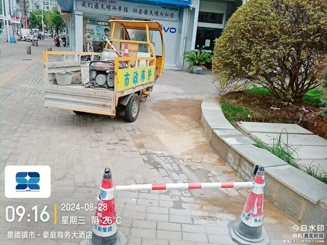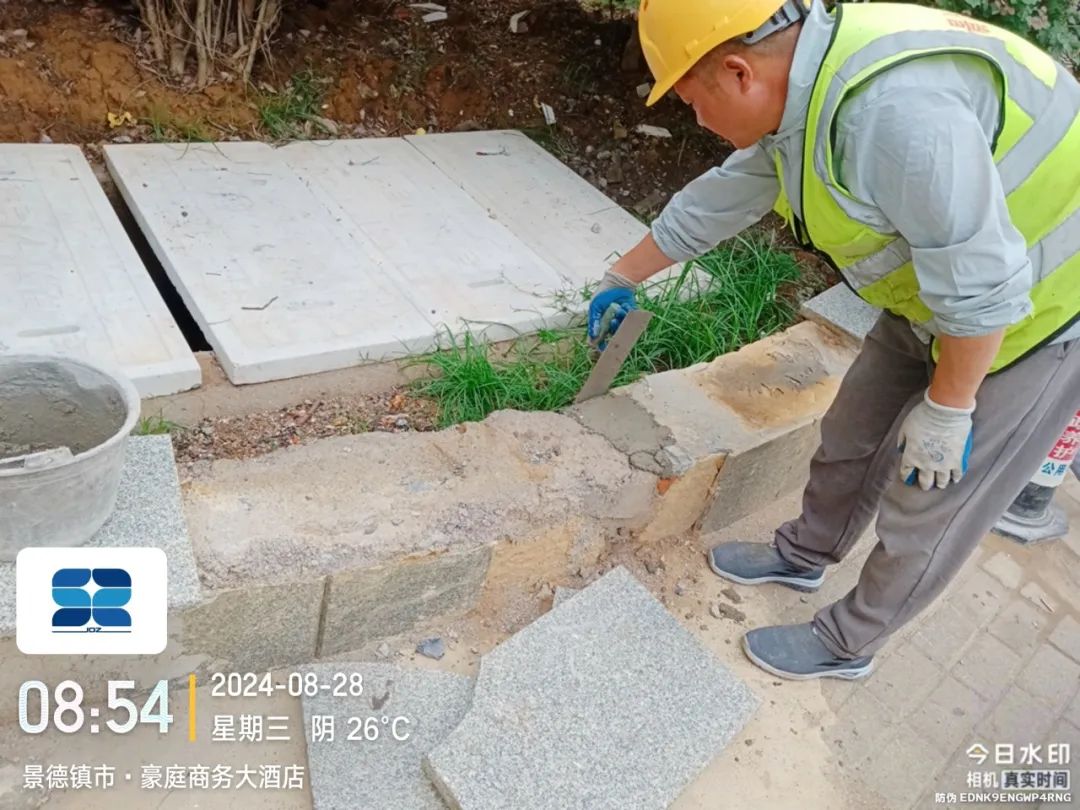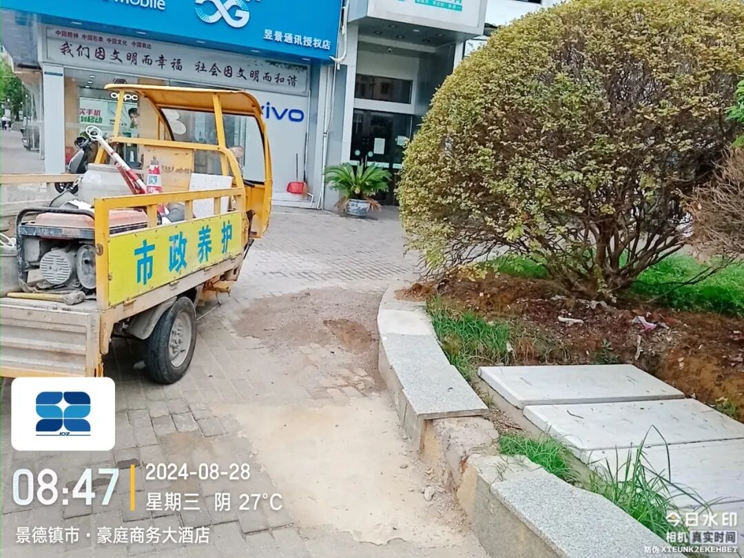 8月28日,接到市民反映,翠云路豪庭商务大酒店段一绿化岛路缘破损,给市民出行带来不便。市政立即展开现场勘查,并及时修复,现已处理完毕,效果如下图所示。