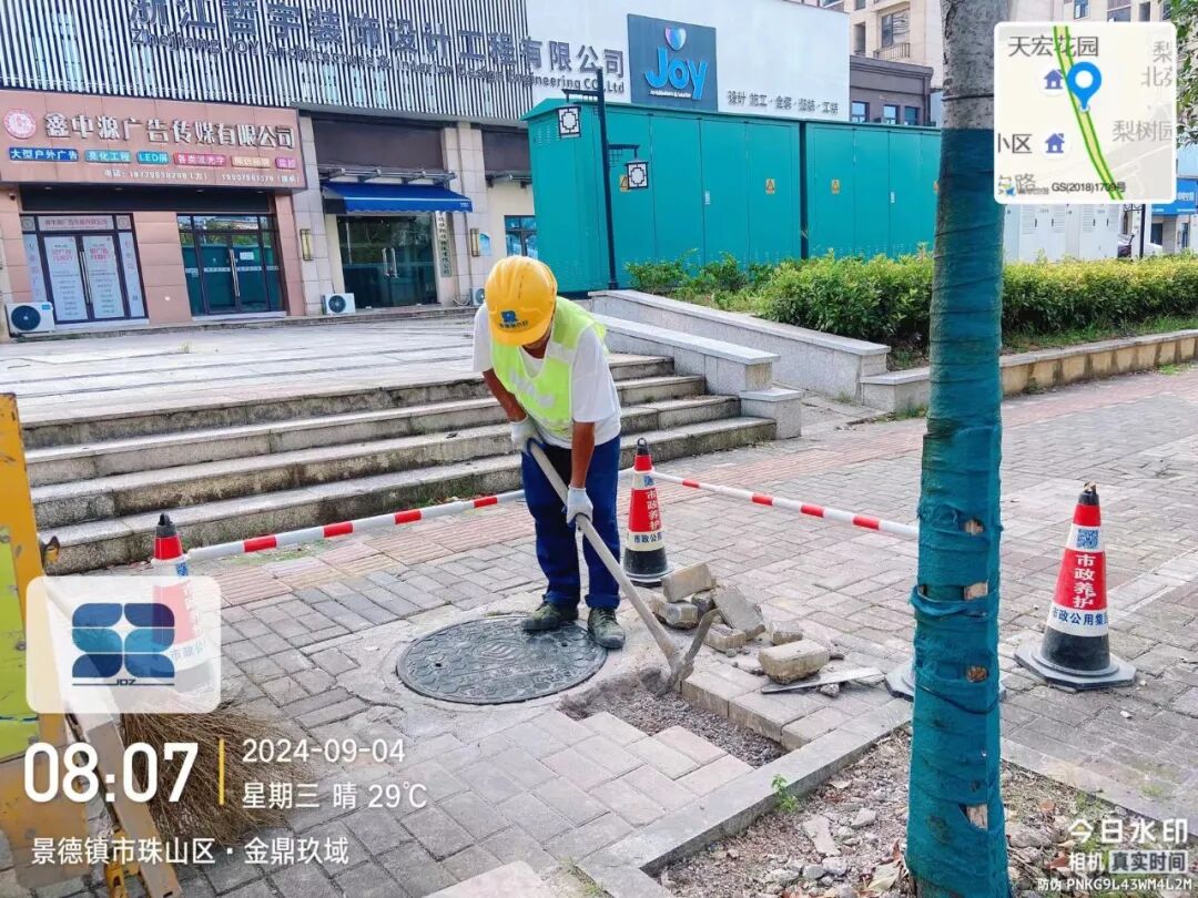 8月27日,接到有关社区反映,玲珑路老张物流店铺门前一雨水井盖缺失,给市民出行带来安全隐患。市政第一时间对现场情况进行查看,并及时展开加装,现已处理完毕,效果如下图所示。