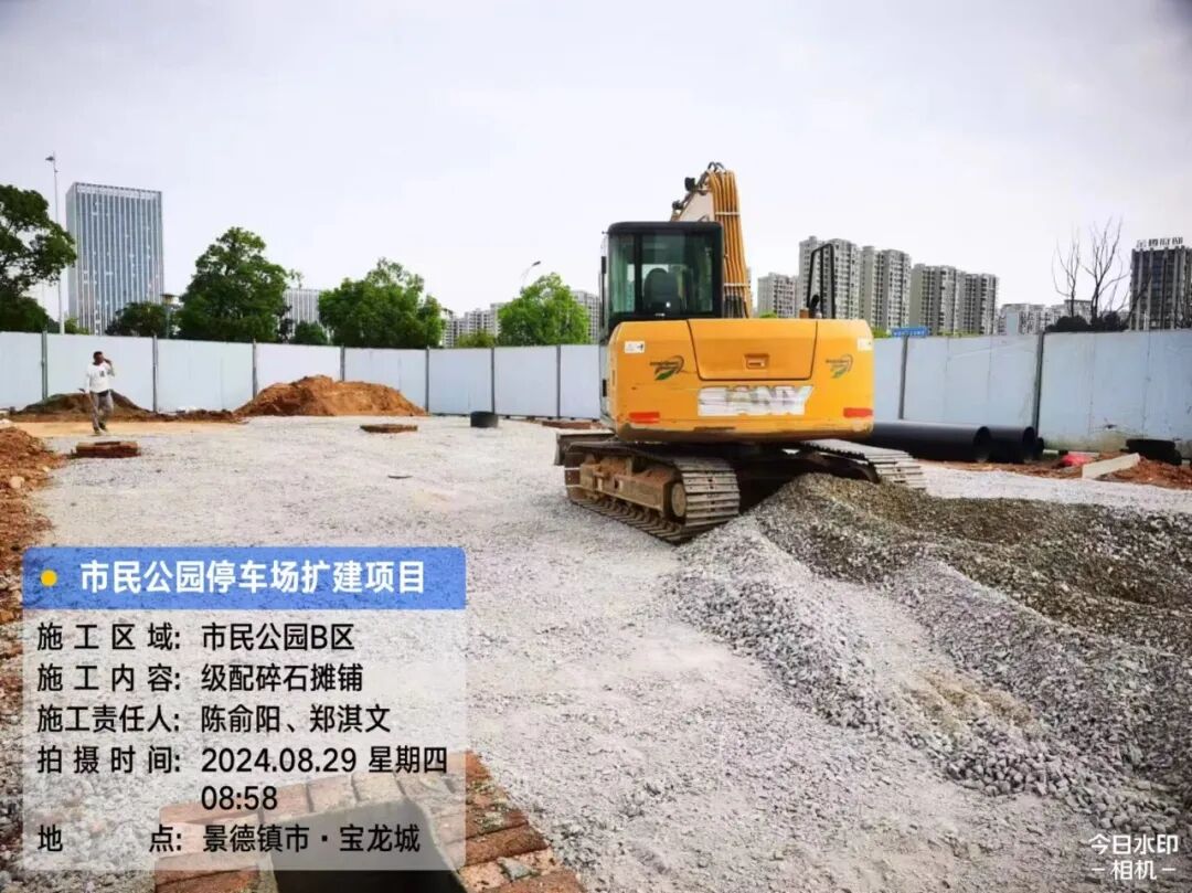 道路状况:停车场扩建区域全封闭施工,期间渣土运输出入,经过施工区域,注意安全