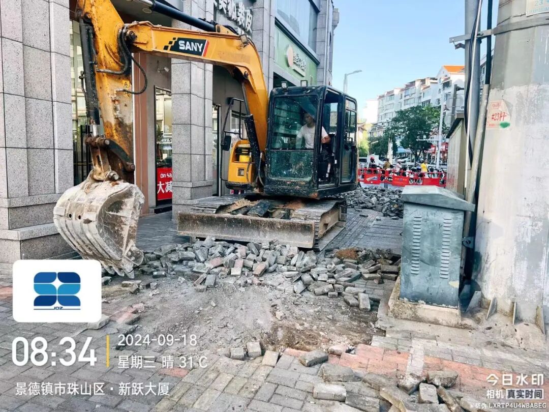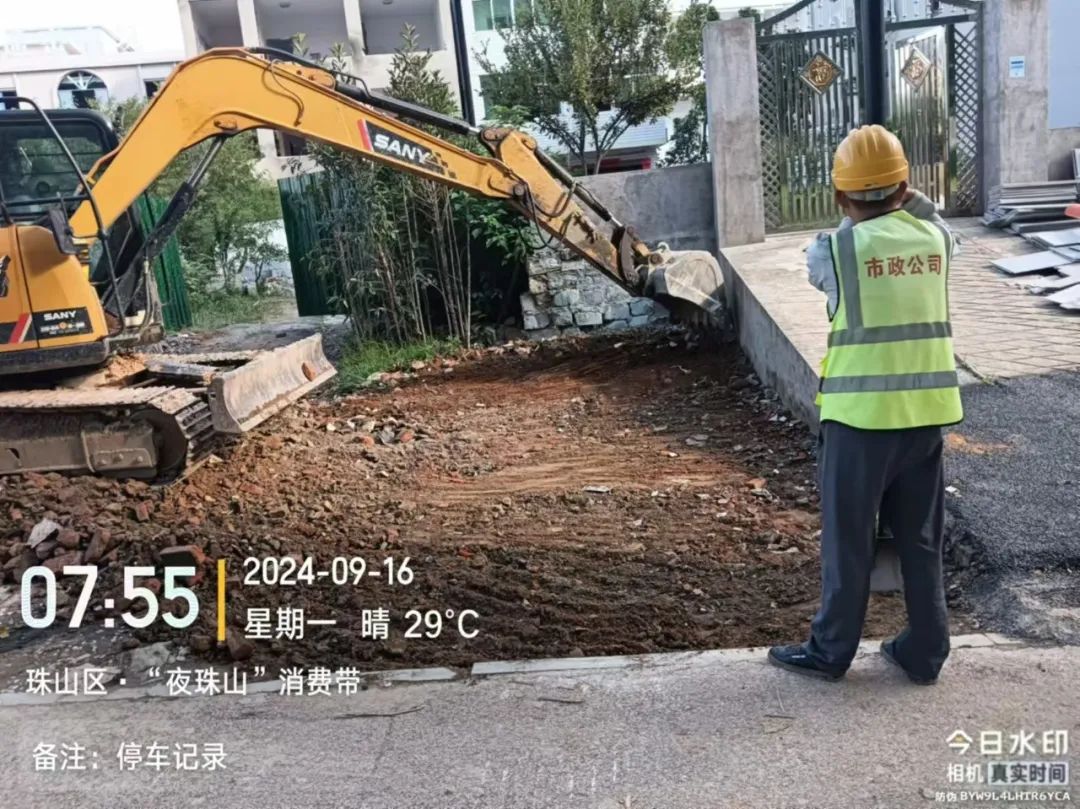 施工动态:目前正在进行人行道开挖、石渣外运、路基整平等施工