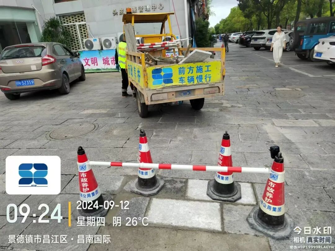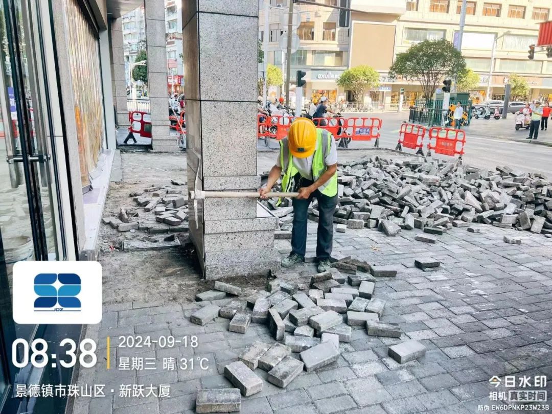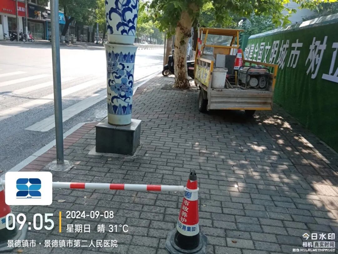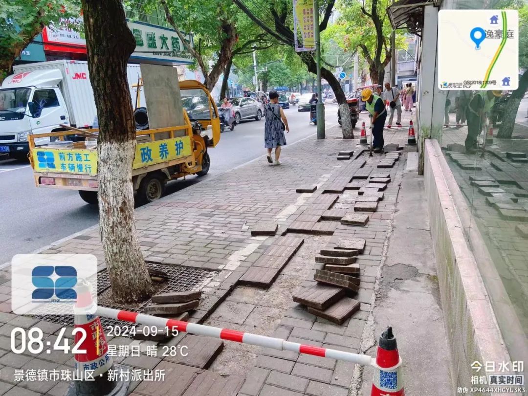 道路状况:人行道间断性封闭施工,经过施工区域,注意安全