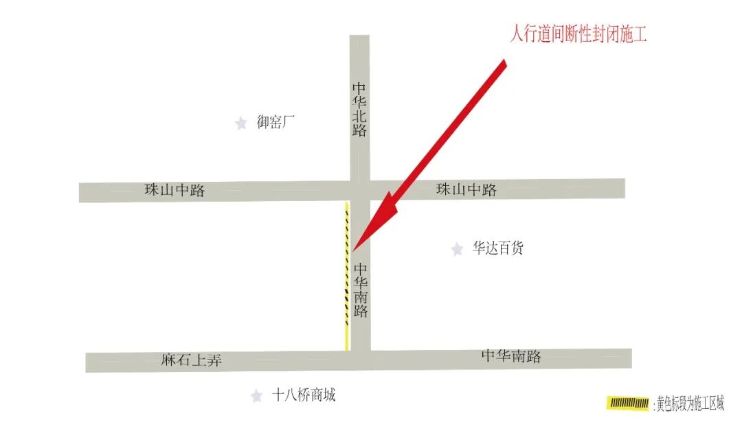 施工路段:珠山中路肯德基至十八桥十字路口