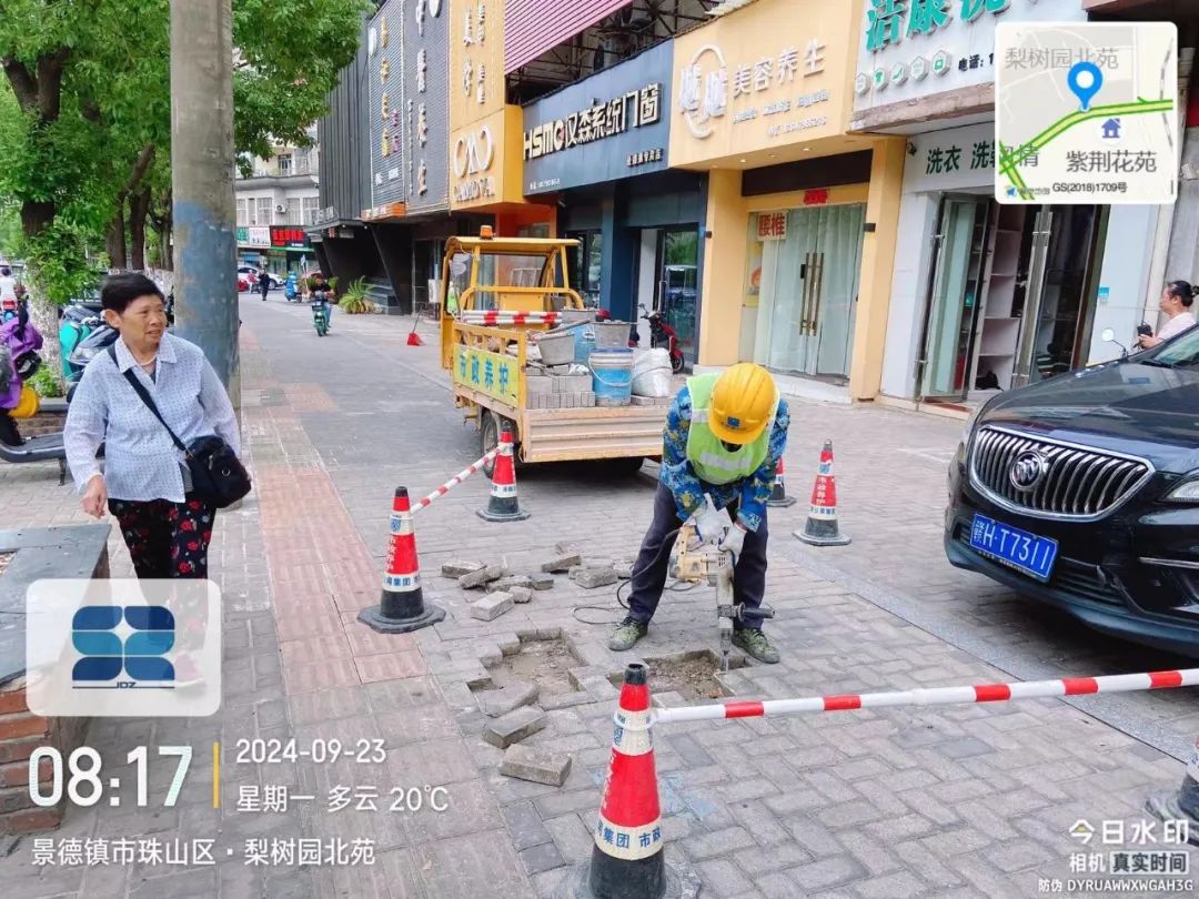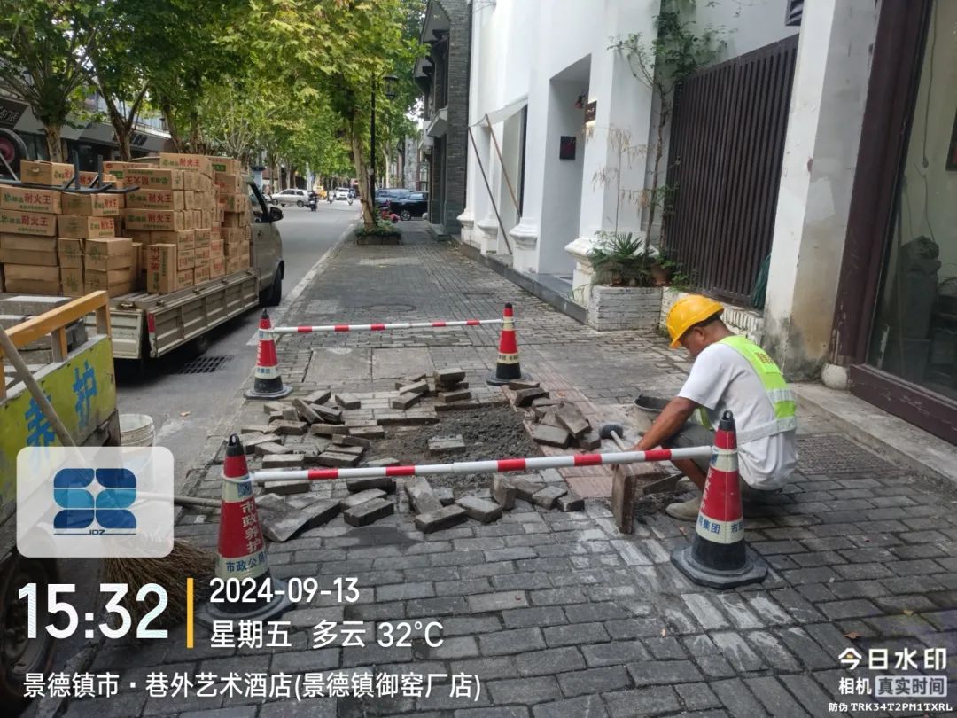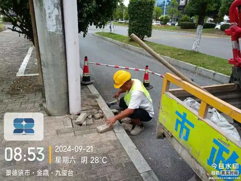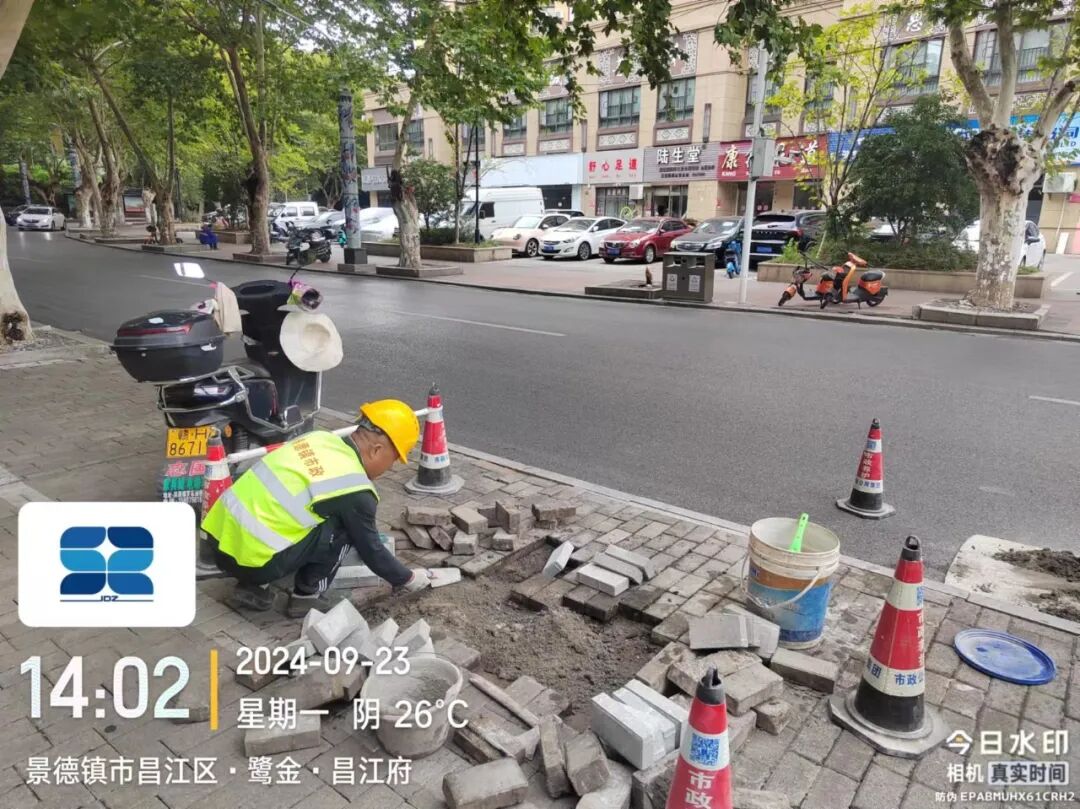 9月13日,中山北路巷外艺术酒店段人行道路面破损下沉,给市民出行及沿街商铺日常营业带来不便。市政第一时间对现场情况进行查看,并及时展开路面修复,现已处理完毕,效果如下图所示。