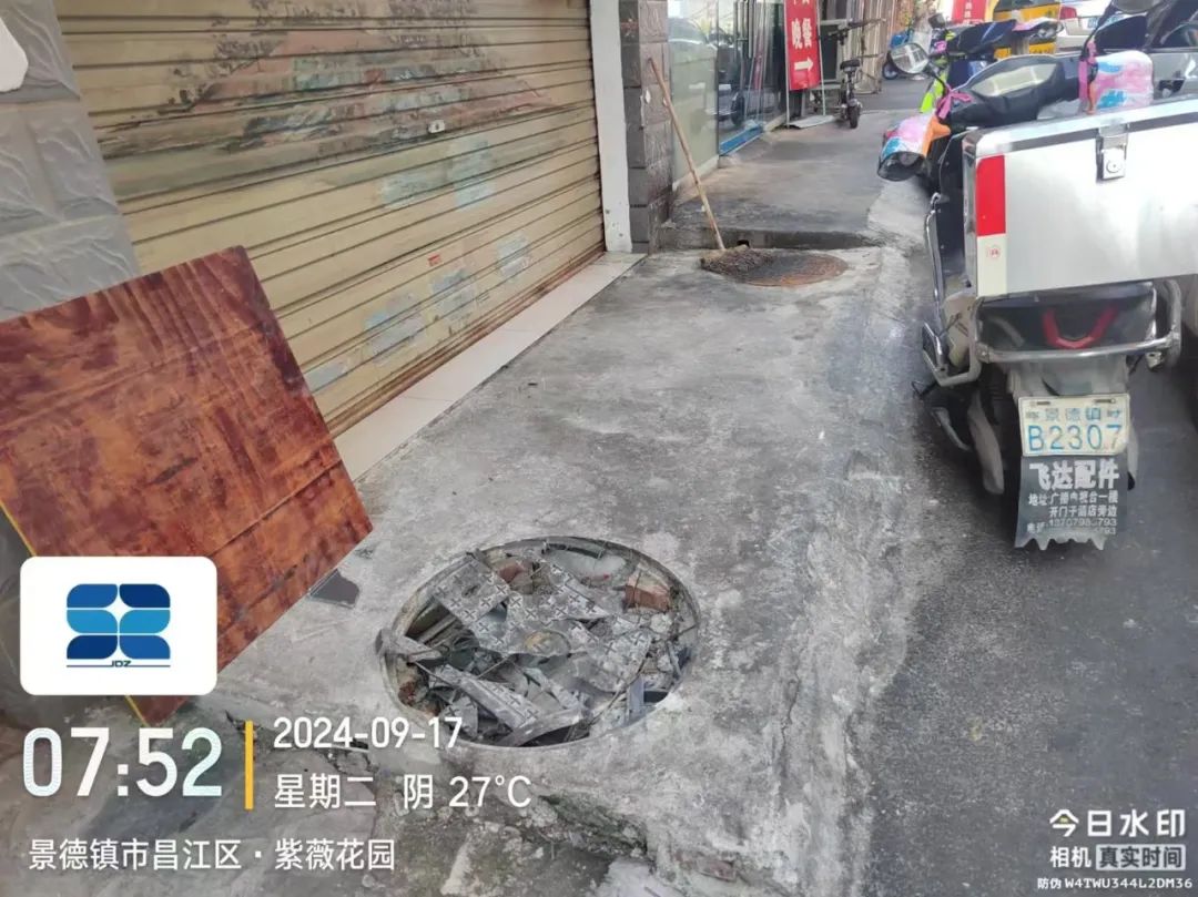 9月17日,接到市民反映,紫薇路紫薇花园段一人行道井盖破损,给市民出行带来安全隐患,且影响城市道路环境美观。市政立即展开现场勘查,并及时修复,现已处理完毕,效果如下图所示。