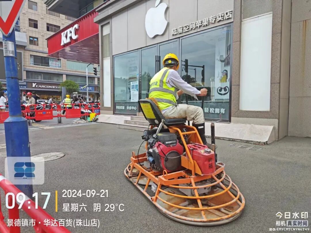 施工动态:目前正在进行路基整平、透水砼浇筑、面层夯平等施工