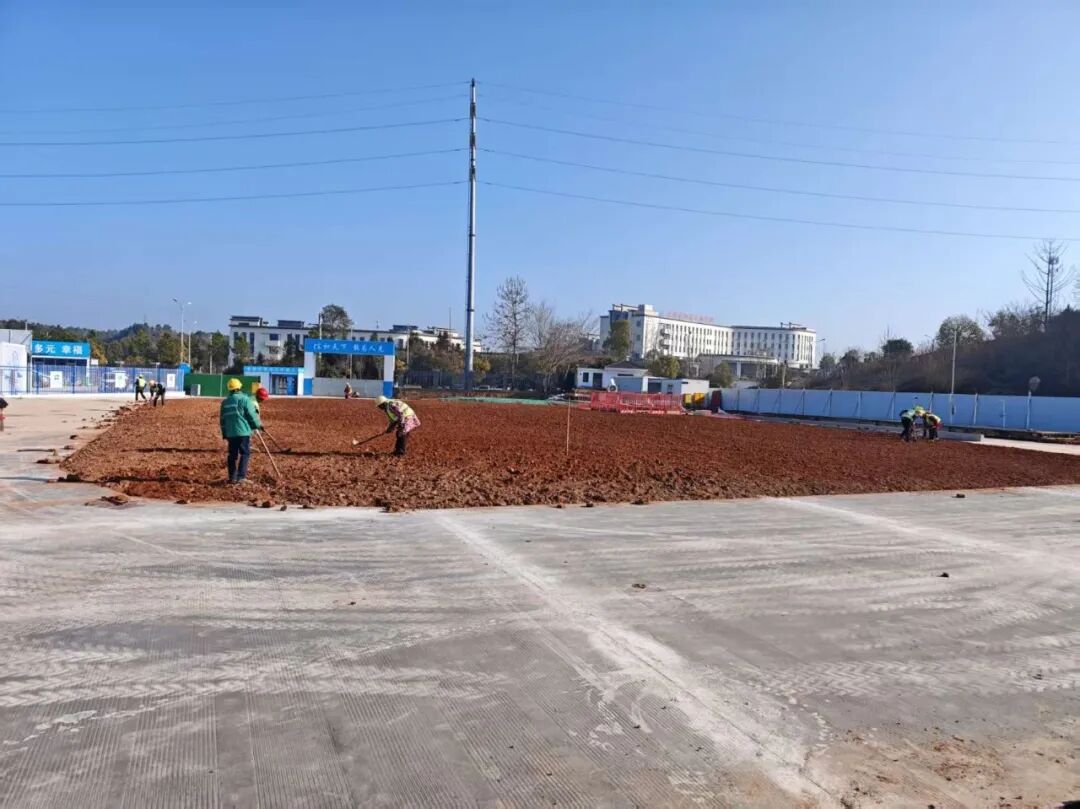 施工动态:目前正在进行项目前期工作(项目部临建、施工围挡、园内树木移栽、报告厅基坑开挖、入场道路、钢筋加工棚搭设、雨水管道铺设)等施工