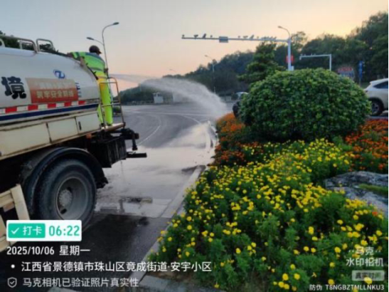 绿化养护精耕细作,擦亮城市颜值底色。中心聚焦城市绿化养护关键环节,高标准推进专项作业:一是垃圾杂物集中清零。针对市民出行集中的重点区域与城市主次干道,组织力量对人民公园、珠山大道、迎宾大道、紫晶路、莲花塘、南河滨江公园、景兴大道、光明大道、景北大道、名坊园、曙光路、昌江广场、景德大道等场所,集中清理杂草、落叶及各类垃圾杂物,累计清理面积达23.6 万平方米,有效消除卫生死角,确保城市环境洁净清爽。二是草坪修剪精细提质。围绕市民休闲游憩需求,对南河滨江公园、新昌南湖公园、景兴大道、迎宾大道、宝龙广场、景北大道、景德大道、珠山大道、沿江东路、曙光路、昌江广场周边等区域草坪,全面开展平整修剪作业,累计修剪面积14 万平方米,进一步提升草坪景观整洁度与美观度,打造舒适宜人的休憩空间。三是草花浇灌精准护颜。为保障节日草花景观效果,对珠山大道、金岭大道、景德西大道、瓷都大道(区政府段、开门子门口段)、景北大道、高岭大道、高铁大道、太白园等区域的草花实施精准浇灌养护,浇灌面积约1.2 万平方米,确保草花长势良好、色彩艳丽,为城市增添节日景观亮点。