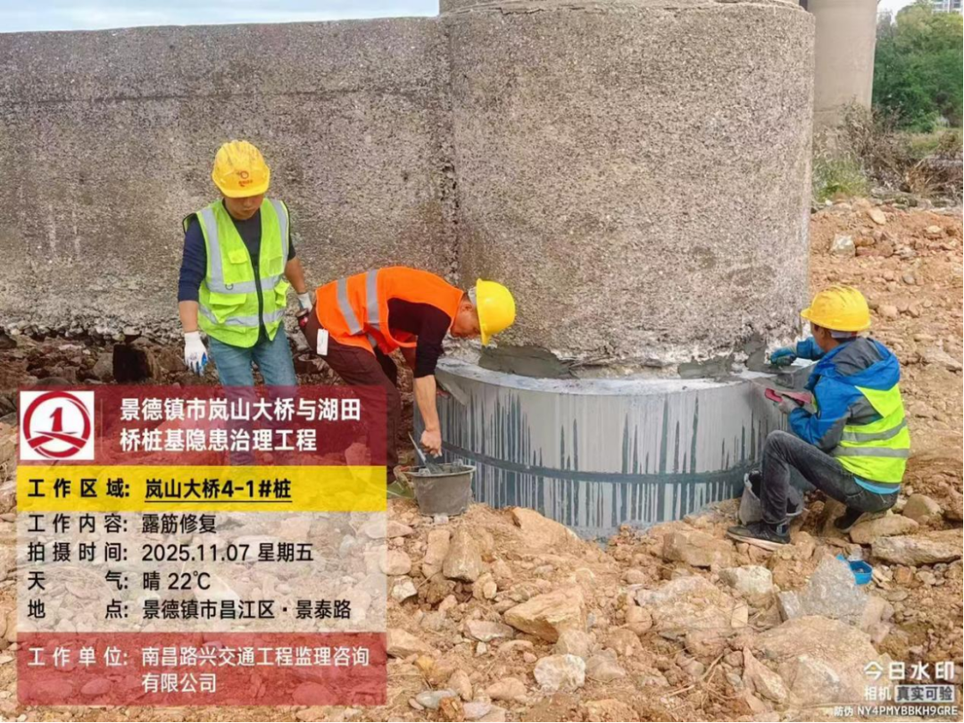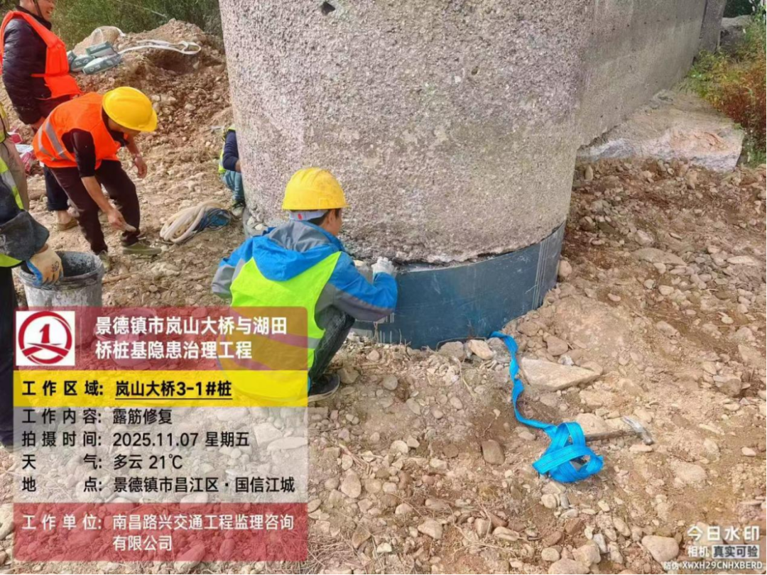 岚山大桥作为景泰路跨越昌江的关键交通枢纽,承担着繁重的通行任务——不仅日常车流量大、重型车辆往来频繁,更承载着沿岸两侧居民的高频次出行需求。随着服役时间的推移,桥梁不可避免地面临构件老化、荷载压力递增等现实挑战。在专业的桥梁结构检测中,工作人员精准发现岚山大桥部分桩基存在严重冲刷问题,伴随混凝土剥落、主筋外露锈蚀等结构性病害;无独有偶,湖田桥的检测结果同样敲响警钟,其4#墩被查实存在冲刷掏空现象,直接威胁桥梁基础稳定。