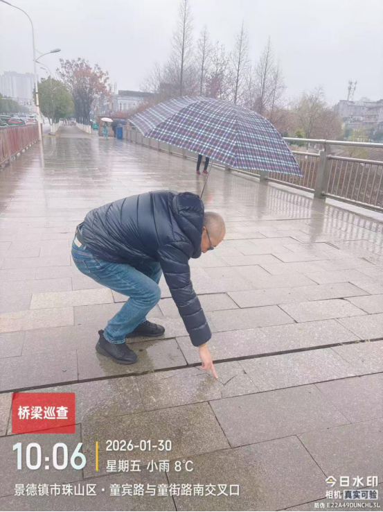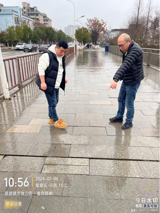开展隐患排查整治,防范化解安全风险。为全面消除城市桥梁安全隐患,中心精心制定春节前隐患排查整治行动工作方案,明确排查范围、重点内容和工作要求,组织专业排查队伍开展城市桥梁安全隐患大排查。排查工作坚持全面覆盖、重点突出的原则,对辖区内城市桥梁的桥面、伸缩缝、护栏、墩柱及桥梁整体结构进行全方位、无死角排查,尤其对车流量大、易破损的重点点位实施重点排查、反复核查。排查过程中,发现南河二桥桥面、岚山大桥人行道存在破损问题,第一时间组织维修人员进场处置,及时完成破损部位维修,将安全隐患消除在萌芽状态,全力保障桥梁结构安全。